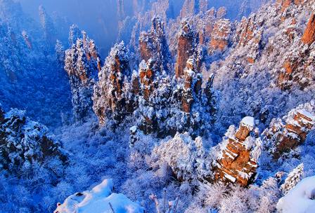 張家界三千奇峰、八百秀水,用“雄、奇、險(xiǎn)、秀、幽”5字來概括,早已得到大眾的公認(rèn)。張家界的山水,稱得上是風(fēng)景山水的經(jīng)典;游張家界,則成為人生的宿愿和幸事。飽覽張家界,可謂四時(shí)皆宜:春天,是大地充滿靈氣的季節(jié),張家界此時(shí)的山水,充滿著生氣,充滿著向往,它的每一座山峰,每一道水溝,都舉著搖曳多姿的花朵,是表示對游人的歡迎,更是表達(dá)一種生命的意境;夏天,是空氣膨脹欲望的季節(jié),張家界此時(shí)的山水,充滿著遐想,充滿著誘惑,它的一草一木,一枝一葉,都滴瀉著生命的翠綠,裝飾著每一座山峰,蘊(yùn)含著人生的幻想和追求;秋天,是星月喜慶豐收的季節(jié),張家界此時(shí)的山水,一樣地走向深厚,一樣地寫滿沉穩(wěn),它的山山嶺嶺,它的溝溝壑壑,在翠綠的底色中亮出火一樣的紅葉,抒寫著熱情,歌吟著成熟與奔放;冬天,是風(fēng)花雪月般詩意的季節(jié),張家界此時(shí)的山水,冷峻中透著溫情,蒼茫里飽含著魄力,它的一座座石峰,它的一棵棵巖松,都是一個(gè)個(gè)冰清玉潔的世界,它們都玉樹臨風(fēng)般燃燒著,引發(fā)著游客的激情,而那些冰雪覆蓋的小溪,流水在動情地吟唱,就像有情人心中的歌吟,最易撩動愛人的衷腸。我愛張家界四季的景色,但我更愛張家界的冬天,我愛在冬天里與張家界的山水對話,我愛在冬天里到張家界的山水間去暢游,去作一種思想的飛翔! 張家界的冬天并不寒冷,這主要是因?yàn)樗闹芏喔呱剑@里的冬季多為晴朗天氣,故區(qū)域小氣候較為溫暖,暢游張家界無須冒嚴(yán)寒之苦,又可避開歷酷暑之難。即使是雨雪天氣,因?yàn)榫皡^(qū)是一個(gè)高出的整體平臺,小地形則是一塊盆地,所有的景觀就好比一個(gè)放大的盆景,所以在游歷觀賞的行程中,并無寒氣逼人、冷酷加身的感覺。一旦遇上陰雨天氣,景區(qū)因海拔較高,山地氣候又特別明顯,放眼望去,枝枝葉葉便都成了水晶般的世界,精靈奇巧的霧凇千姿百態(tài),笨拙憨厚的灌木清純天成。若是有雪降臨,不管大小,山上立即便會是一個(gè)白雪皚皚的世界,恰似翡翠盤中堆砌著白玉,那些巖壁上的枯枝古樹,此時(shí)又煥發(fā)青春,讓人不由得想起兩句古詩:“春來苔作葉,冬至雪為花。”我曾陪《羊城晚報(bào)》的一位朋友冬游張家界,她興致極高地滿山里跑,她說:“此山此景,人生頭一回遭遇,可望而不可求,遺憾的是沒有看到雪境里的張家界。”真是老天作美。第二天,我們在山上走著走著,天空便飄起了雪花,頃刻之間,便是一個(gè)雪花飛舞的世界,大地上石峰上樹上身上的雪花,就像火苗一樣點(diǎn)燃了朋友的激情,她情不自禁地面對著山野吟哦起來——親切而新鮮的雪花,落下來,在夢幻深處,在心靈深處,就像飄落的雪白的火焰,溫暖我人生的境界點(diǎn)燃我生命的激情……雪花落下來,落滿大地、石峰和樹冠豐腴著山峰、溝壑和想象為詩意和行程增加了厚度,雪清新,溫暖,純潔,冷冽它是自然的語言,火辣辣的語氣中帶著熱情,還有看不見面的堅(jiān)硬和銳利…… 作為一個(gè)南方的朋友,見到如此美妙的雪的世界,她的激動和驚喜,完全是我意料中的事;而讓我驚奇的是從不作詩的她,竟然意隨興致的吟唱出如此語意雙佳的詩作來。 雪中游張家界,你無需為安危著想,景區(qū)的工作人員,無論何時(shí)何地,都是游客的保護(hù)神。在我的記憶中,深深地記得2000年正月初一的那天,我與攝影界的朋友游張家界,每到一處,各種接待工作都井然有序,清路工人硬是在一尺余厚的積雪上,清出了通往每一個(gè)景區(qū)景點(diǎn)的道路,每一處易出事故的地方,都有工作人員守護(hù)。在天子山頂,我們遇到一群臺灣游客,他們高興地指著冰天雪地的景區(qū)景點(diǎn)說:“張家界山美水美人更美,張家界的雪景則是美上加美,每一座石峰都冰清玉潔,每一棵樹都玉樹臨風(fēng),真是一個(gè)美妙的雪世界啊!” 張家界的森林覆蓋率達(dá)99.7%以上,植物科目種類比整個(gè)歐洲大地還多。因此,冬游張家界,滿眼里仍然是綠色的世界,這就是它與北方景觀的區(qū)別。即使是冰天雪地,那臨風(fēng)玉樹,那挺立的石峰,透過冰雪,仍然會展現(xiàn)出綠色,就像一個(gè)翡翠的世界。置身于這樣的景致里,使你的感覺不寒不躁,如早春二月,心如春芽。這時(shí),你心隨景移,興隨景起,你會由衷地感嘆:“這世界多么美妙,真是個(gè)賞雪景的勝地。”? 冬天去張家界賞雪景,游客不用自己為交通食宿多操心。如今去張家界,公路、鐵路、航路三位一體,十分方便,市內(nèi)去景區(qū)也已修成了高等級公路,返往暢通無阻。旅游通行是景區(qū)旅游,市內(nèi)住宿,各類檔次的賓館任由選擇。盡管景區(qū)山高溝深,路陡程長,但游客無需為勞累擔(dān)憂,景區(qū)內(nèi)已建成兩條上山索道和一條上山升降梯,上黃石寨、天子山、袁家界等核心景區(qū),只是一瞬間的事情。即使在山上走累了,隨處可以叫一架滑竿,轎夫都是些訓(xùn)練有素的精壯青年,他們可以抬著你慢悠悠地一邊瀏覽著雪中的景致,還會一邊為你講些民俗或是一些山中的故事。他們會為你噓寒問暖,寧肯自己多吃些苦,多受些累,他們也會做到讓游客舒心滿意。這時(shí),你還不心曠神怡么?你渾身會涌起一股股溫暖的感覺來。 朋友,下雪時(shí),到張家界觀雪去,那是一場雪白的火焰,將會點(diǎn)